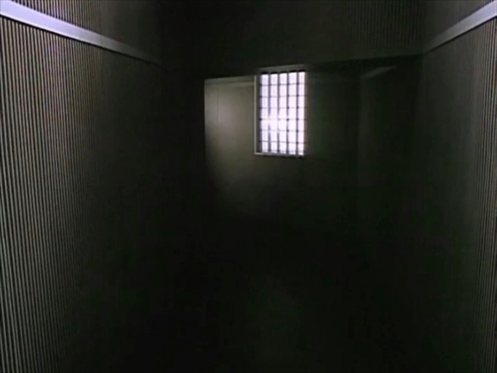 Into the basement, and blue light again.